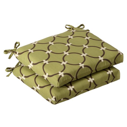 Pillow Perfect Outdoor Green/Brown Geometric Seat Cushion, Squared, 2-Pack Review